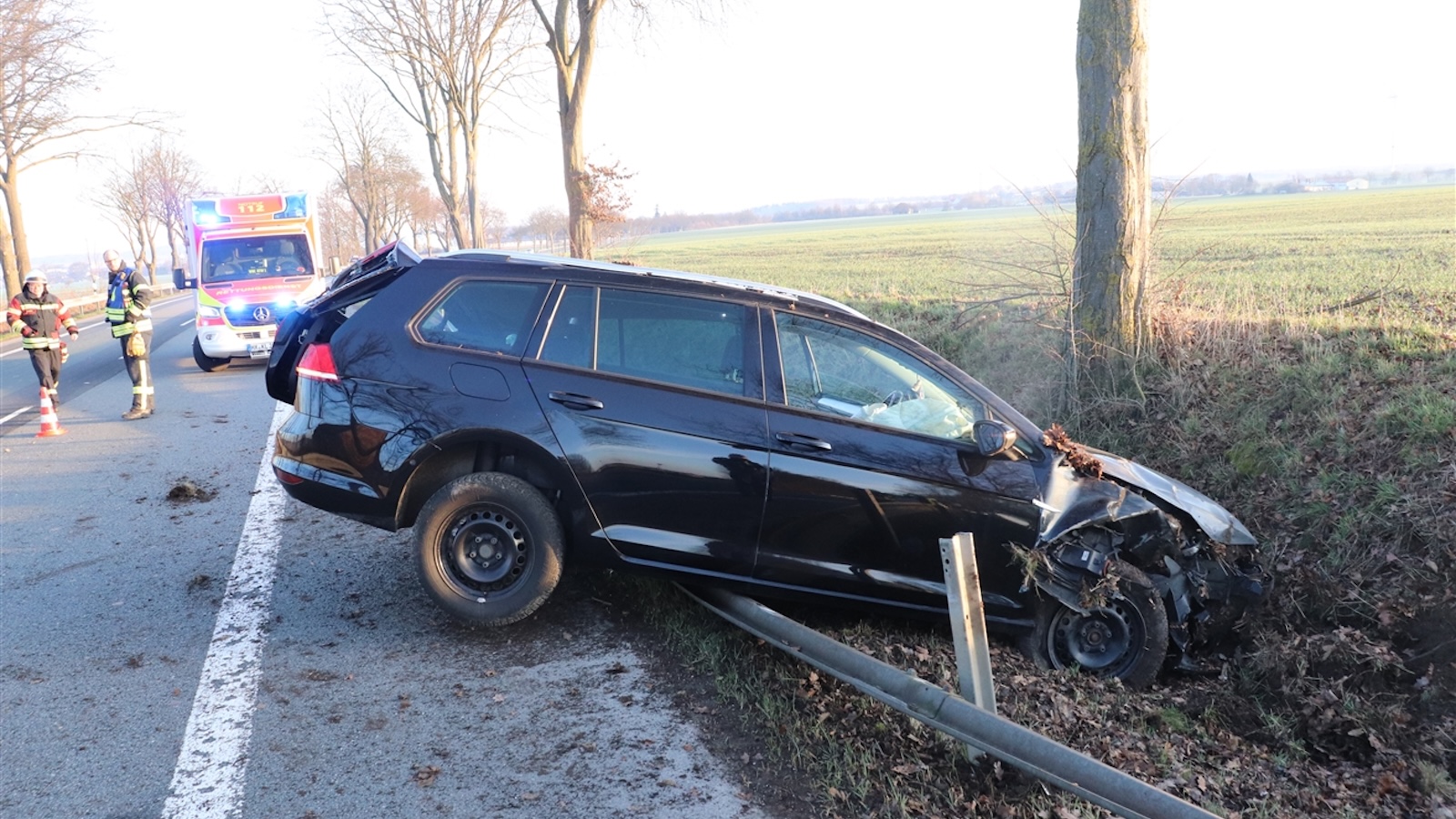 Der 35-Jährige befuhr mit seinem schwarzen VW Golf die B252 von Warburg kommend in Fahrtrichtung Peckelsheim. Gegen 7.30 Uhr kam er zwischen dem Gut Alfredshöhe und Peckelsheim aus ungeklärter Ursache nach rechts von der Fahrbahn ab, prallte zunächst gegen die Schutzplanke und im weiteren Verlauf mit dem Heck gegen einen Baum. Das Fahrzeug kam auf der Schutzplanke zum Stehen.