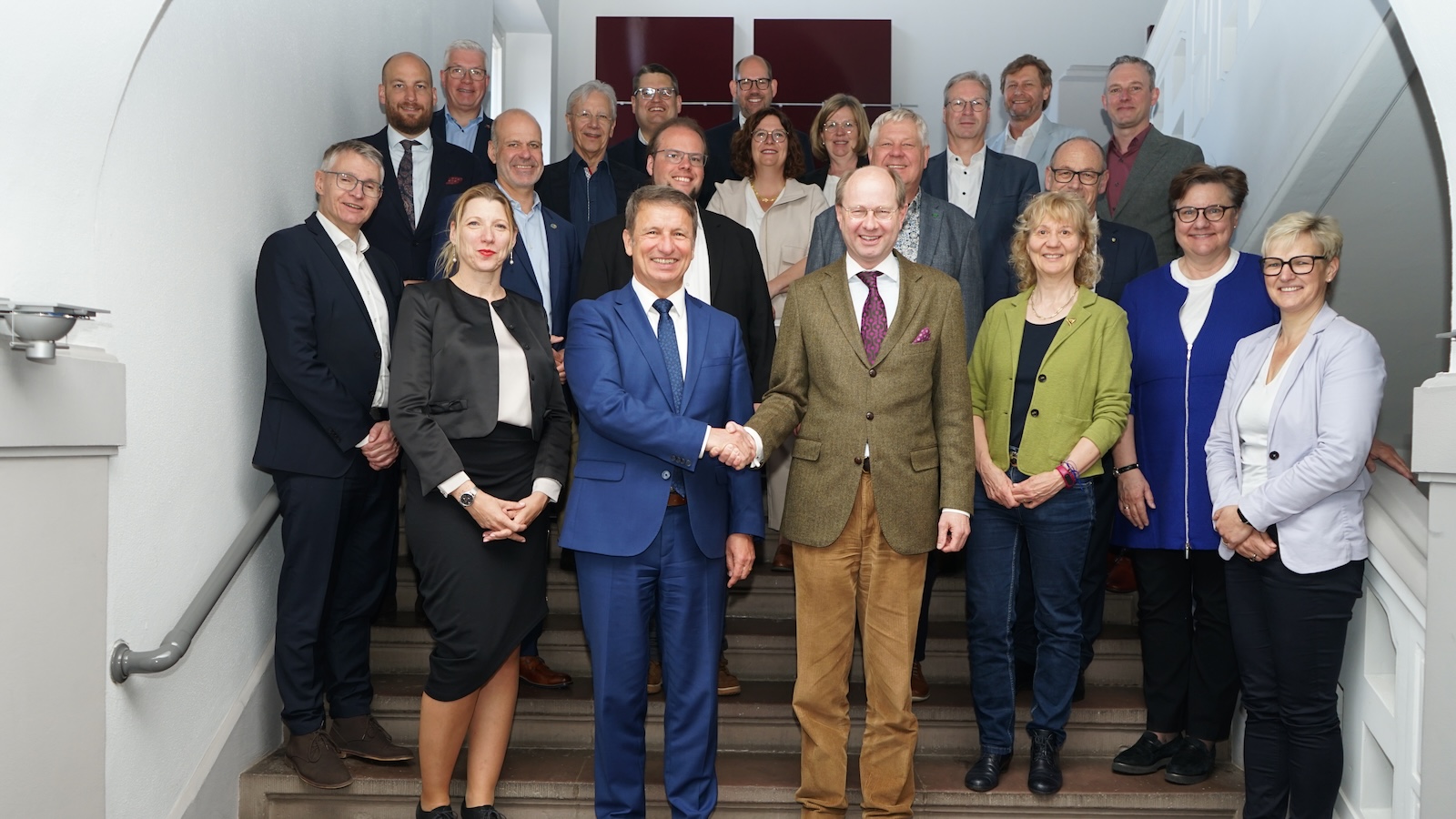 Landrat Michael Stickeln (vorne l.) ist einstimmig zum Vorsitzenden des Umwelt- und Bauausschusses des Landkreistages Nordrhein-Westfalen gewählt worden. Er folgt damit folgt auf den bisherigen Vorsitzenden und Präsidenten des Landkreistages NRW, Landrat Dr. Olaf Gericke (Kreis Warendorf, vorne r.).