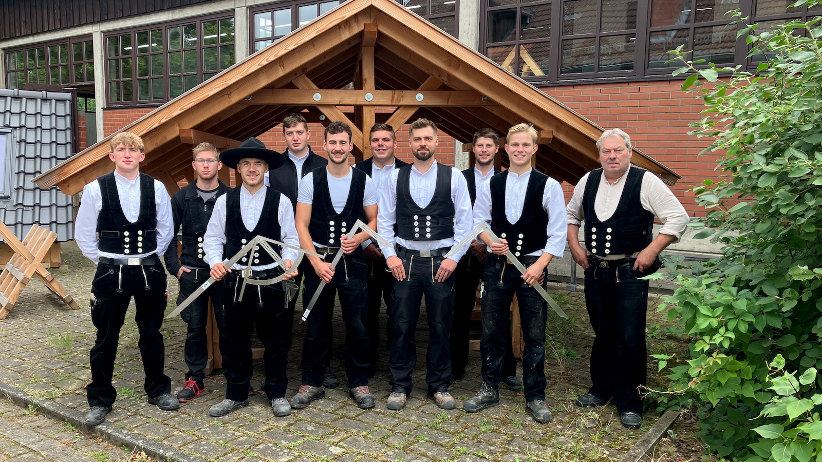 Zimmerergesellen mit ihrem Ausbilder Frank Temme.