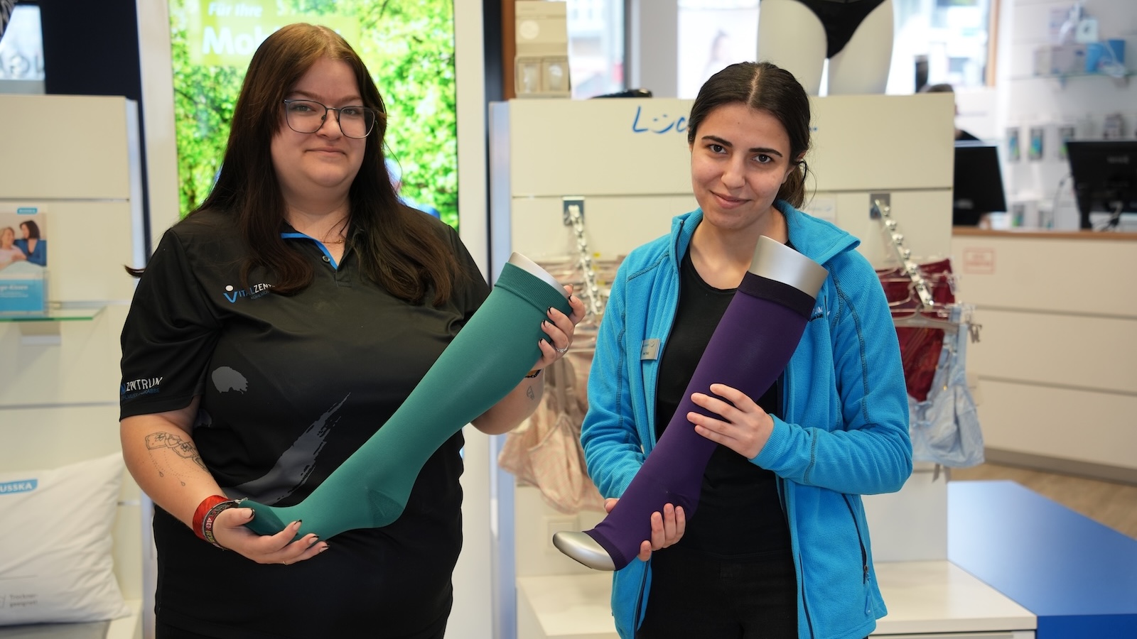 Gerade bei Lip- und Lymphödemen spielt die passende Kompression eine entscheidende Rolle. Lange Zeit fanden diese Krankheitsbilder nur wenig öffentliche Beachtung, im Vitalzentrum steht dieses Thema jedoch klar im Vordergrund. „Wir können unseren Kunden mit perfekt passender Kompression in den unterschiedlichsten Varianten und Farben ausstatten“, erklärt Mandy Arndt, Sanitätshausleitung für die Standorte Stadtoldendorf, Holzminden und Bad Driburg. Zum Einsatz kommen ausschließlich Produkte zertifizierter Hersteller, darunter auch die Marke Bauerfeind. Diese verbindet hohe Qualität mit modischen Aspekten. Besonders gefragt sind aktuell die neuen Farben French Lavender, Irish Green und Toscana Red, die Funktionalität und Ästhetik miteinander vereinen.