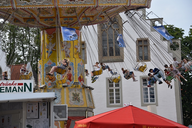 Wie immer ein großes Highlight waren die vielen Fahrgeschäfte, die teilweise auf dem diesjährigen Annentag ihre Premiere feierten. Benedikt (14), Cara (13) und Sophie (17) aus Höxter und Boffzen haben einige der 15 Fahrgeschäfte einmal ausprobiert und sich für das Überkopfmonster ‚Blackout‘ als bestes Fahrgeschäft entschieden, wie sie erzählen. Eine Achterbahn, die auch für kleine Kinder geeignet ist, das war der „Wilde Clown“, der ebenfalls vom Schausteller-Betrieb Kaiser aus Herford betrieben wird. Auf dem Baustellen-Labyrint gegenüber der Ponyreit-Bahn Bonanza dominierten hingegen keine Fachkräfte, sondern hier war der Spaß im Inneren mit dem „Krumm- und Schief-Bau-Team“perfekt. Brakel von oben, das wurde außerdem möglich gemacht durch den Riesenkettenflieger vor dem Rathaus oder dem Riesenrad „Columbia“ in gut 40 Metern Höhe. Gut angenommen wurde auch die Gourmet-Meile, wo es Spanferkel, marinierter Flammlachs, riesige Fleischspieße, spanische Churros, frische Nudeln und vieles mehr angeboten wurde. Im Annenzelt startete der Samstagabend nach einem Kinderprogramm und dem heimischen Blasmusikquartett Blechknödel zunächst mit der Hiked Cover-Rockband und der Ragged Glee-Coverband und dem DJ Factory Disco Team durch. Bevor im La-Casa-Zelt der Salitos- und Clubfloor eröffnet wurde, fand hier das Ehemaligentreffen der Schulen der Brede statt. Stargast am Sonntag war der berühmte Ballermann-Partysänger Mickie Krause.