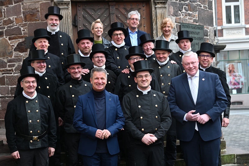 Bürgermeister Daniel Hartmann betonte in seinen Grußworten die Bedeutung der Schornsteinfeger als Glücksbringer und Sicherheitsexperten: „Ein bisschen Glück können wir alle gut gebrauchen. Ihre Arbeit, die den Brandschutz, die Energieberatung und den Erhalt historischer Gebäude umfasst, ist ein unverzichtbarer Beitrag für unsere Gesellschaft.“ Hartmann erinnerte an die historische Bedeutung des Rathauses, das nicht nur ein Ort politischer Entscheidungen sei, sondern auch ein Symbol für Offenheit und Gemeinschaft. Die Verknüpfung zwischen der historischen Architektur und dem Handwerk der Schornsteinfeger unterstrich die enge Verbindung zwischen Tradition und modernem Handwerk.