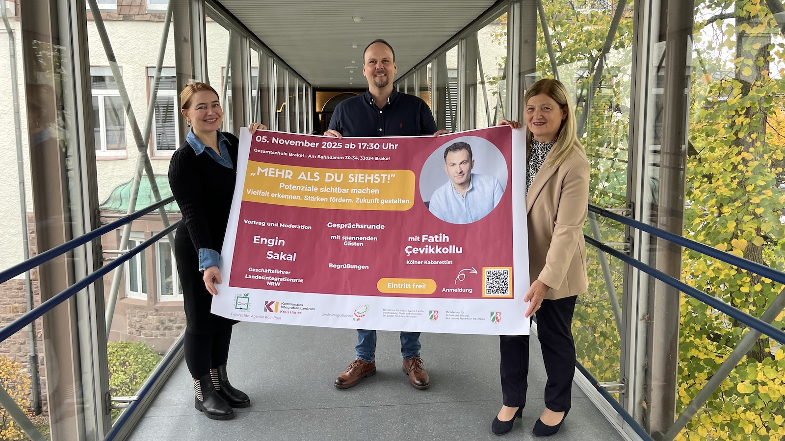Beginn der Veranstaltung „Mehr als Du siehst! Potenziale sichtbar machen“ am 5. November 2025 ist um 17.30 Uhr in der Aula der Gesamtschule Brakel, Am Bahndamm 30, 33034 Brakel. Der Eintritt ist kostenlos. Interessierte können sich anmelden unter: www.integration.kreis-hoexter.de.