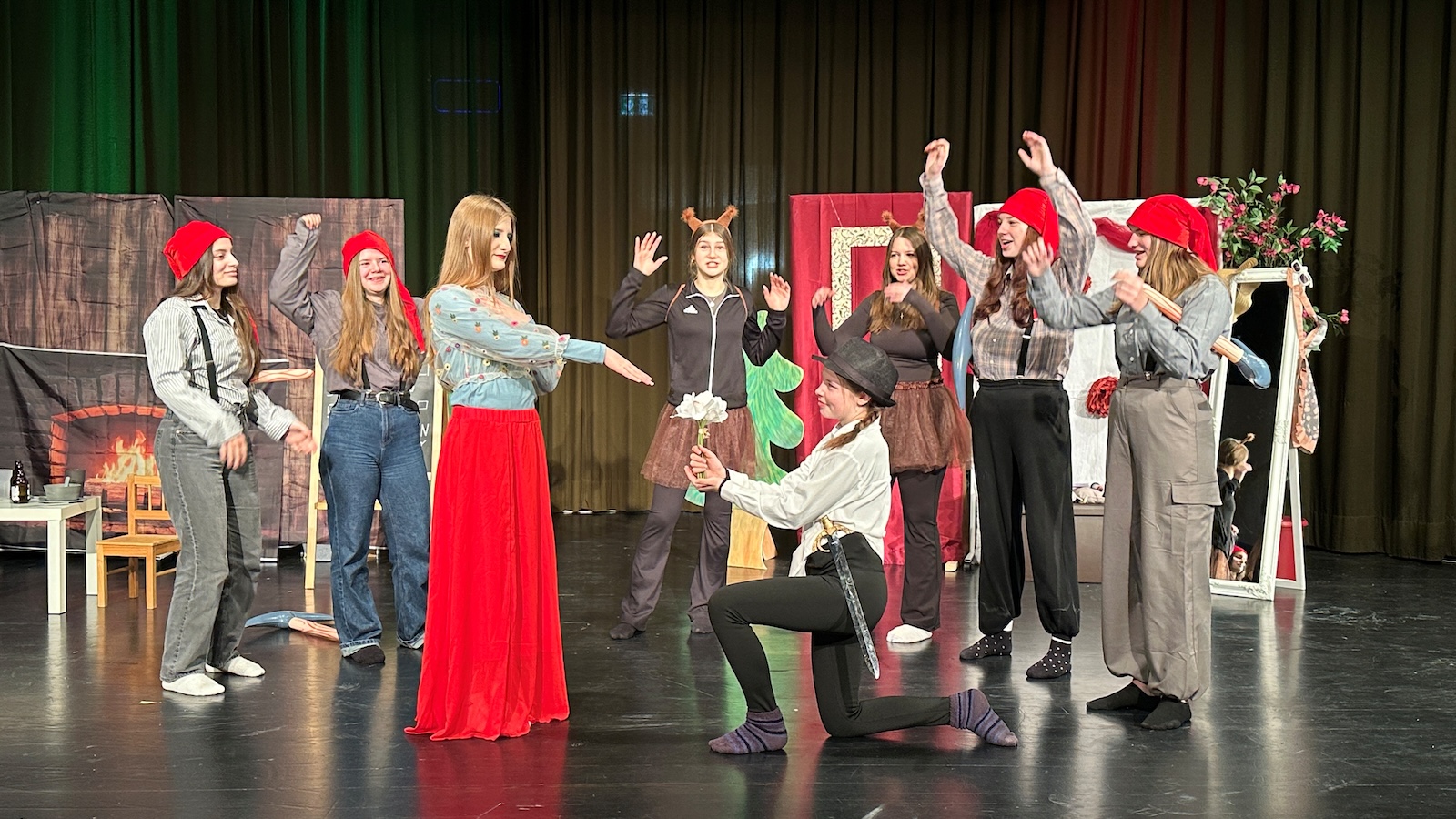 Den Auftakt gestaltete der Jahrgang 10 mit einem echten Klassiker der Märchenwelt: dem Theaterstück „Schneewittchen und die sieben Zwerge“. Mit viel Spielfreude, kreativen Kostümen und gelungenen schauspielerischen Leistungen zog die Inszenierung das Publikum sofort in ihren Bann. Immer wieder war herzliches Lachen aus den Reihen zu hören, am Ende belohnte das Publikum die Darstellerinnen und Darsteller mit langanhaltendem Applaus.