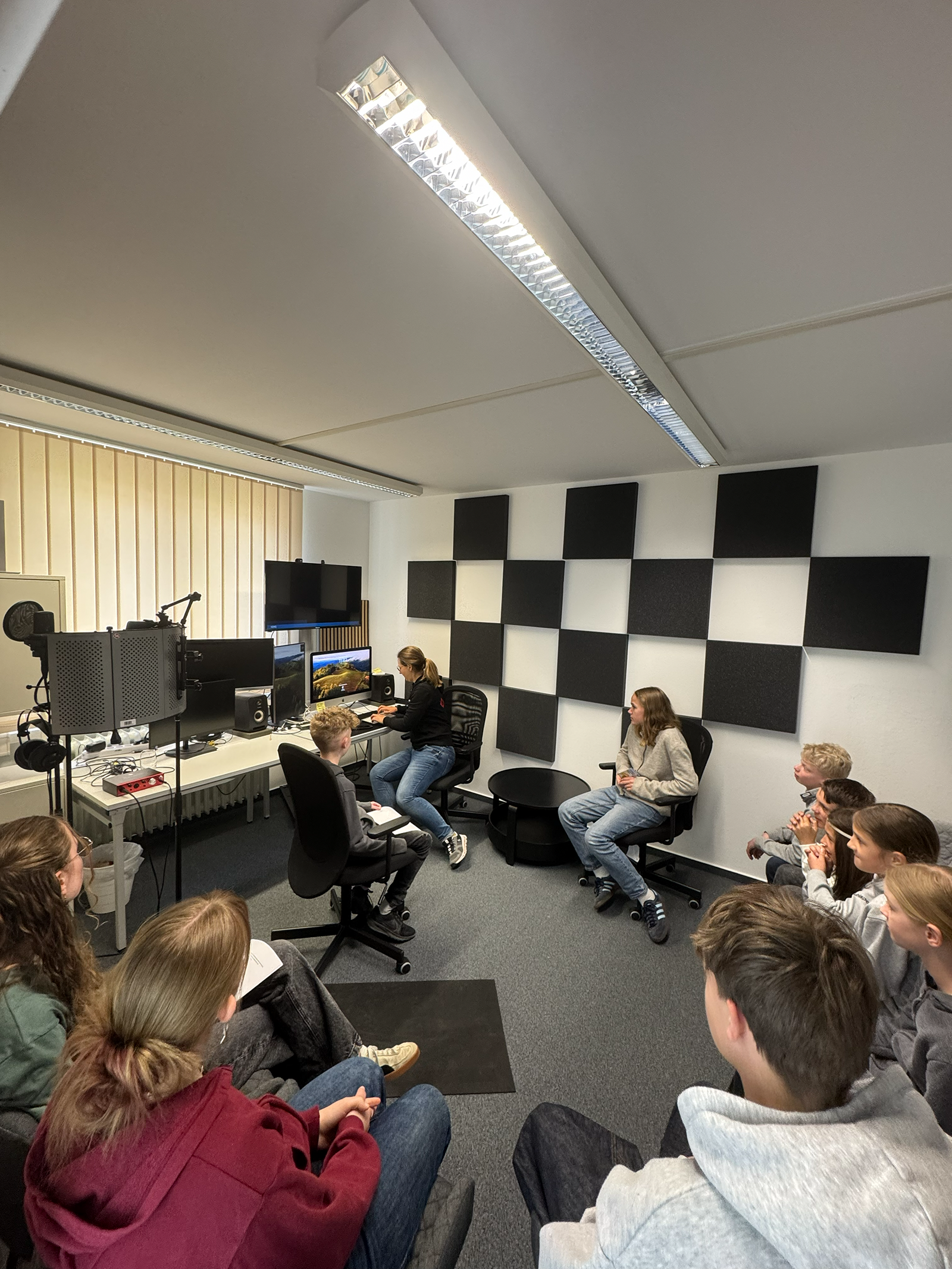 Im Studio wurde das Format später gemeinsam mit Madeline Sprock aufgezeichnet. Die Kinder übernahmen dabei selbst den Fragenteil und führten Emanuel Neuenroth reihum durch das Gespräch. Im Anschluss zeigte Sprock am Beispiel von Adobe Premiere Pro, wie aus den Aufnahmen ein fertiger Beitrag entsteht.