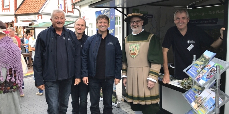 Haselünne/Warburg (red). Der diesjährige Westfälische Hansetag fand zeitgleich mit dem 19. Korn- und Hansemarkt in der niedersächsischen Stadt Haselünne statt. Hierzu waren die 49 Delegationen und Freunde aus den westfälischen Hansestädten eingeladen, um sich wieder einmal auszutauschen und den zahlreichen Besucherinnen und Besuchern ihre Hansestädte zu präsentieren. Auch das gemeinsame Feiern kam dabei nicht zu kurz. Ebenso herrschte ein reges Treiben auf dem 19. Korn- und Hansemarkt der Stadt Haselünne. Seit über 30 Jahren lockt der alle zwei Jahre stattfindende Historische Korn- und Hansemarkt viele begeisterte Gäste in die Mauern der ältesten Stadt des Emslandes und fordert Groß und Klein zum Staunen und Mitmachen auf. Zwei Tage bevölkerten Burgmänner in malerischen Gewandungen, vornehme Bürger in historischen Trachten, Marketenderinnen, Handwerker und Landsknechte, Musikanten und Bänkelsänger die Straßen Haselünnes und bildeten ein farbenfrohes Potpourri vergangener Zeiten. Am Stand der Hansestadt Warburg informierten Claus Chalas und Hermann Behler die interessierten Besucher über die Stadt im Diemeltal. Neben der Bewerbung der touristischen Vorzüge Warburgs besuchte die heimische Delegation, bestehend aus Bürgermeister Michael Stickeln, seinem Stellvertreter Heinz-Josef Bodemann und dem Hansebeauftragten Jörn Becker, auch verschiedene Sitzungstermine und Kongresse. So zum Beispiel die Delegiertenversammlung der Mitgliedstädte, in der wichtige Angelegenheiten der westfälischen Hanse beraten und entschieden wurden, unter anderem die Aufnahme der Städte Rheda-Wiedenbrück sowie Meppen in die Westfälischen Hanse. Zusammenfassend erlebten die Teilnehmer und Besucher des Westfälischen Hansetages bei angenehmen äußeren Bedingungen abwechslungsreiche Veranstaltungstage, an denen sich wieder einmal in vielfältiger Weise die Aktualität und Lebendigkeit des Hansegedankens offenbarte.