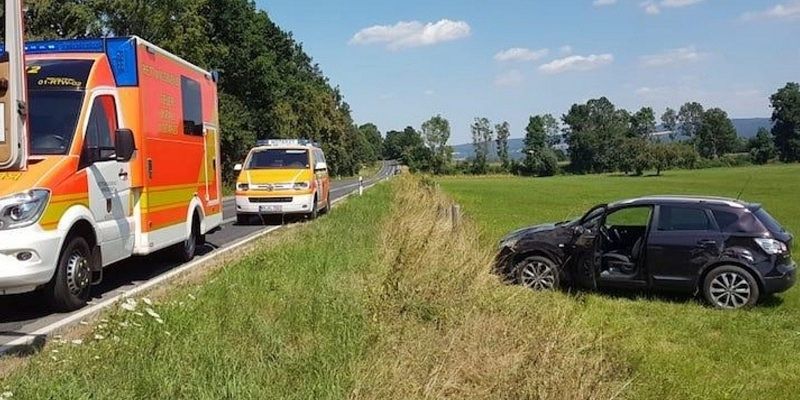 Kreis Höxter (red). Ein 52-jähriger Mann befuhr am Samstag, 27. Juli, gegen 14.29 Uhr mit seinem Nissan die B 64 in Richtung Höxter. Aus bislang ungeklärter Ursache kam der Fahrzeugführer hinter der Gemeinde Ottbergen zunächst nach links von der Fahrbahn ab und beschädigte dort einen Leitpfosten. Anschließend schleuderte der Pkw nach rechts über die Fahrbahn in ein angrenzendes Feld und überschlug sich dort. Der Fahrer verletzte sich bei dem Unfall leicht. An dem Nissan und an einem Weidezaun entstand ein Schaden von über 8000 Euro. Das Fahrzeug wurde abgeschleppt. Während der Unfallaufnahme mussten Bereiche der B 64 komplett gesperrt werden.
