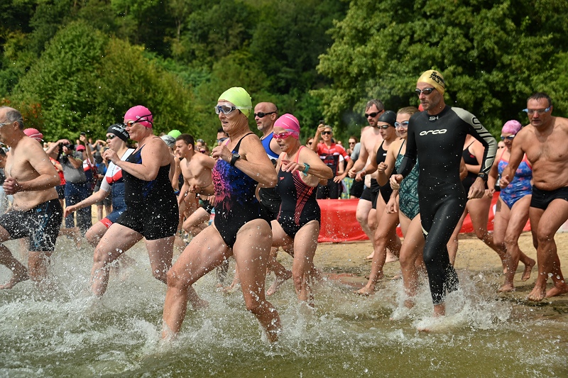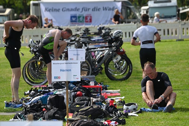 Höxter (TKu). Am vergangenen Sonntag zog der Weserbergland-Triathlon in Höxter-Godelheim erneut zahlreiche Sportbegeisterte in seinen Bann. Rund um die idyllische Freizeitanlage fand die fünfte Auflage dieses sportlichen Großereignisses statt, organisiert vom Kreissportbund Höxter, moderiert von Markus Finger und mit Unterstützung des Kreises sowie der Stadt Höxter. Einen Teilnehmerrekord wie in dem Jahr 2019, der aufgrund des damals kurzfristig abgesagten Köln-Marathons aufgestellt wurde, gab es in diesem Jahr nicht. Dafür erreichte die Veranstaltung eine respektable Anzahl von über 200 Einzelstartern und 35 Staffeln, die in Höxter an den Start gingen. Das Event, das sowohl erfahrene Athleten als auch Triathlon-Neulinge ansprach, fand bei idealen Wetterbedingungen statt. Bei angenehmen Temperaturen und nahezu windstillem Wetter bot der Tag perfekte Voraussetzungen für alle Beteiligten. Insgesamt 90 Helferinnen und Helfer aus verschiedenen Vereinen und vom Veranstalter sorgten für einen reibungslosen Ablauf, darunter auch viele Helfer der Deutschen-Lebens-Rettungs-Gesellschaft aus den Kreisen Höxter und Paderborn, die für die Sicherheit der Teilnehmenden am und im Wasser präsent waren. Der Startschuss für das erste Teilnehmerfeld fiel pünktlich um 11 Uhr durch Landrat Michael Stickeln. Kurz darauf eröffnete Bürgermeister Daniel Hartmann das Rennen für die zweite Gruppe, die reine Damengruppe. Insgesamt fünf Startgruppen, darunter drei Herrengruppen, eine Damengruppe und eine gemischte Staffelgruppe, gingen ins Rennen.